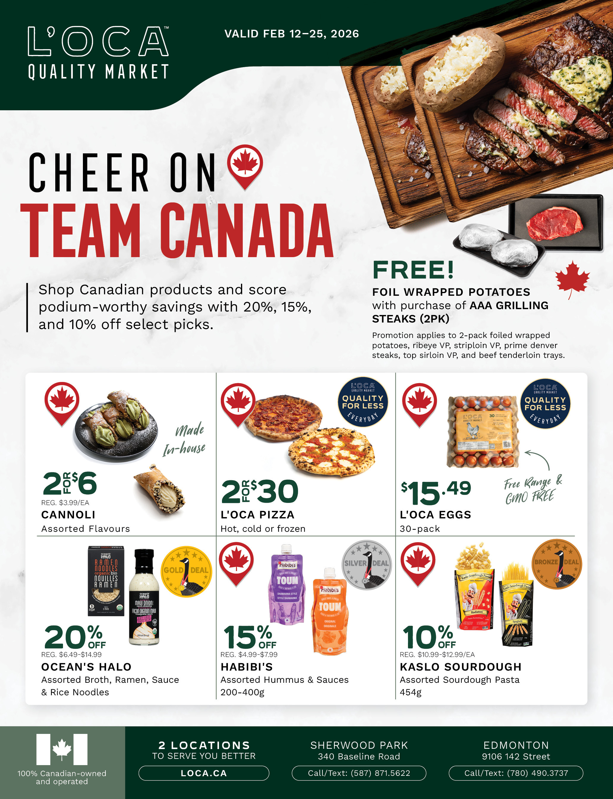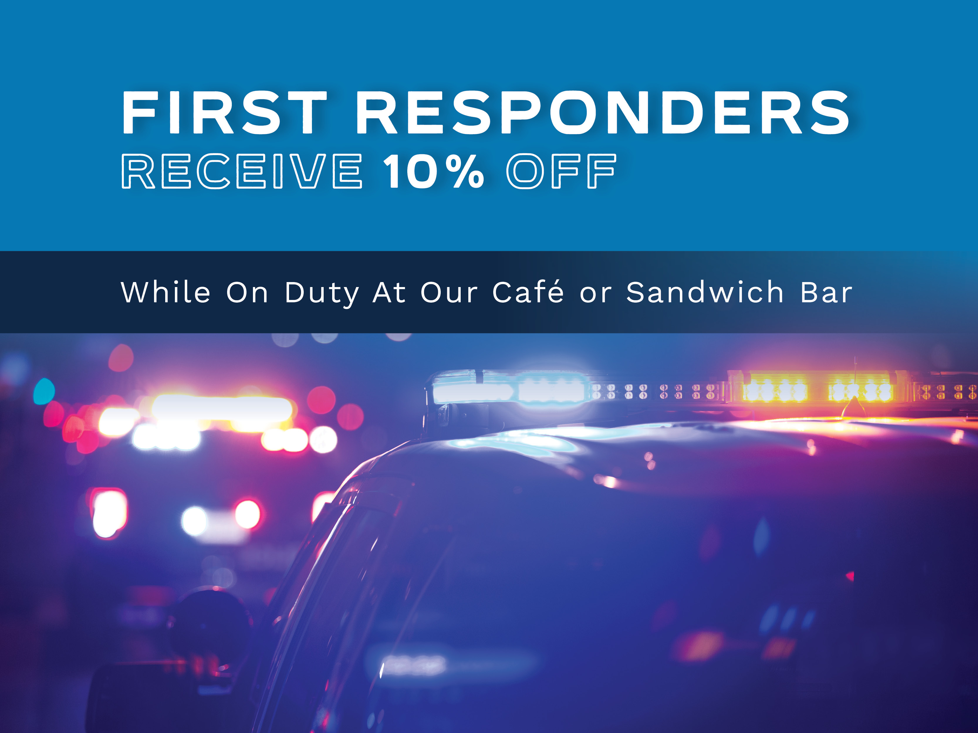 To show our sincere appreciation for your dedication and service, L'OCA Quality Market offers all on-duty or uniformed First Responders 10% OFF at our café or sandwich bar, ANYTIME OF DAY, at both our Sherwood Park and 142nd Street locations.