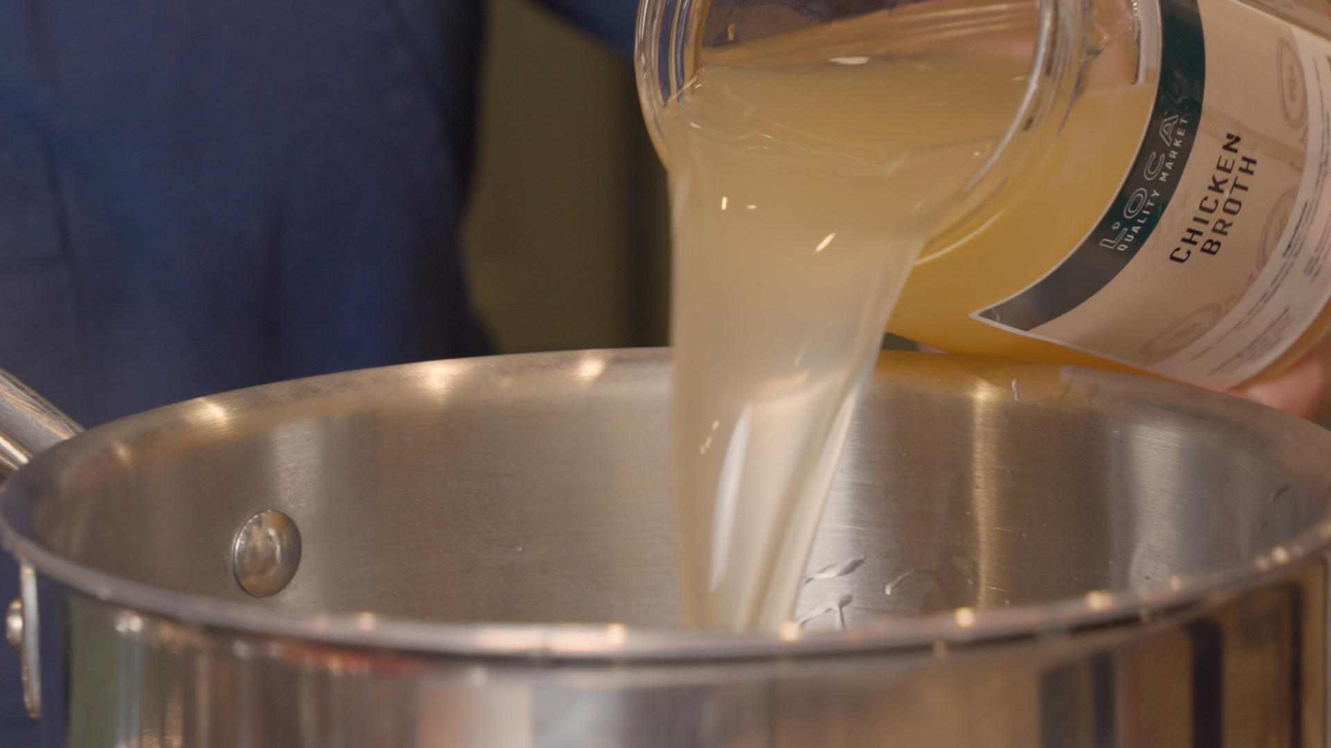 - Add 1-1.5 cups of chicken broth to the blended soup mixture, season to taste with salt and pepper, and bring to a simmer.