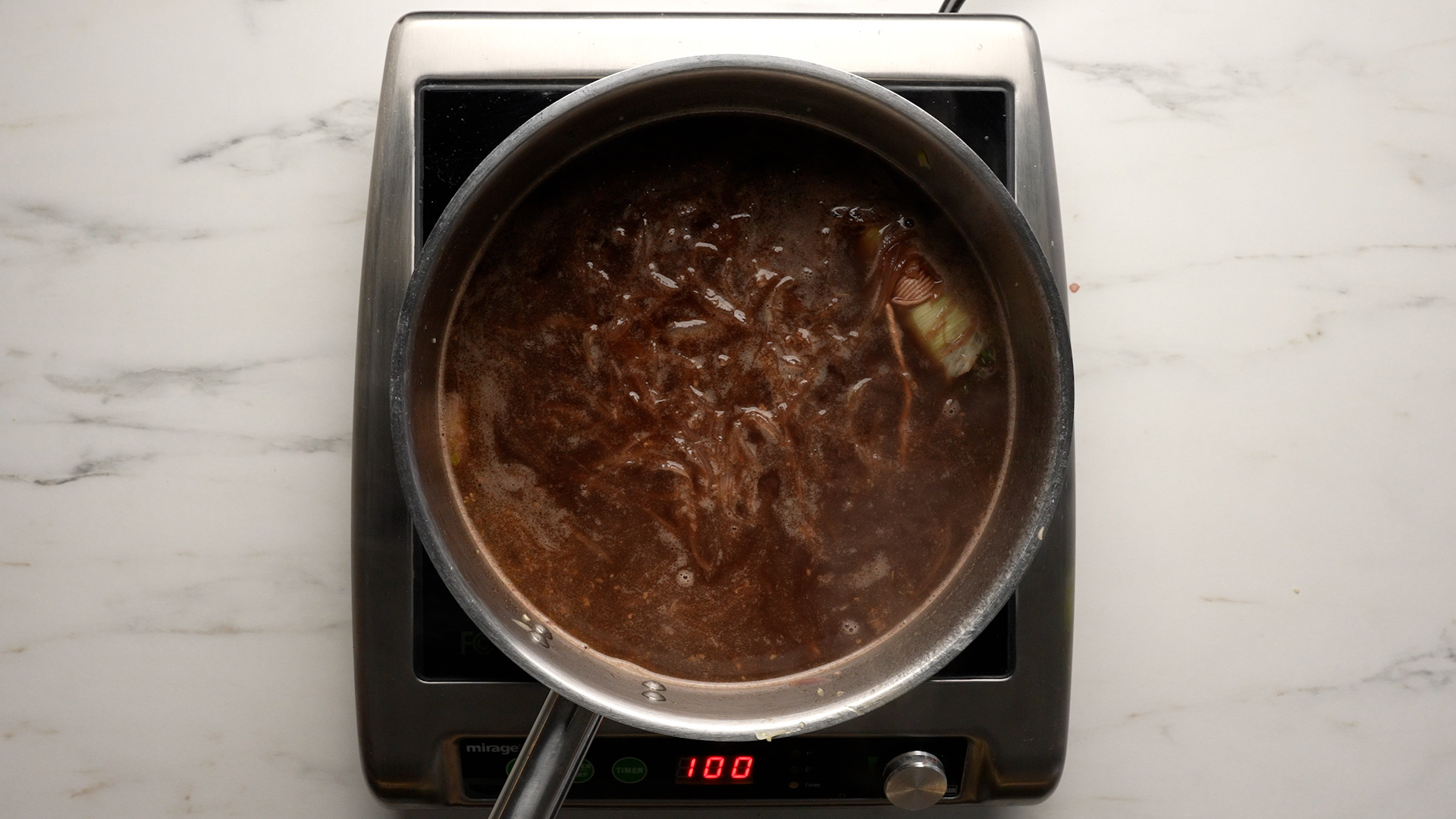 - Lower heat and simmer uncovered for one hour, then remove the bouquet garni.