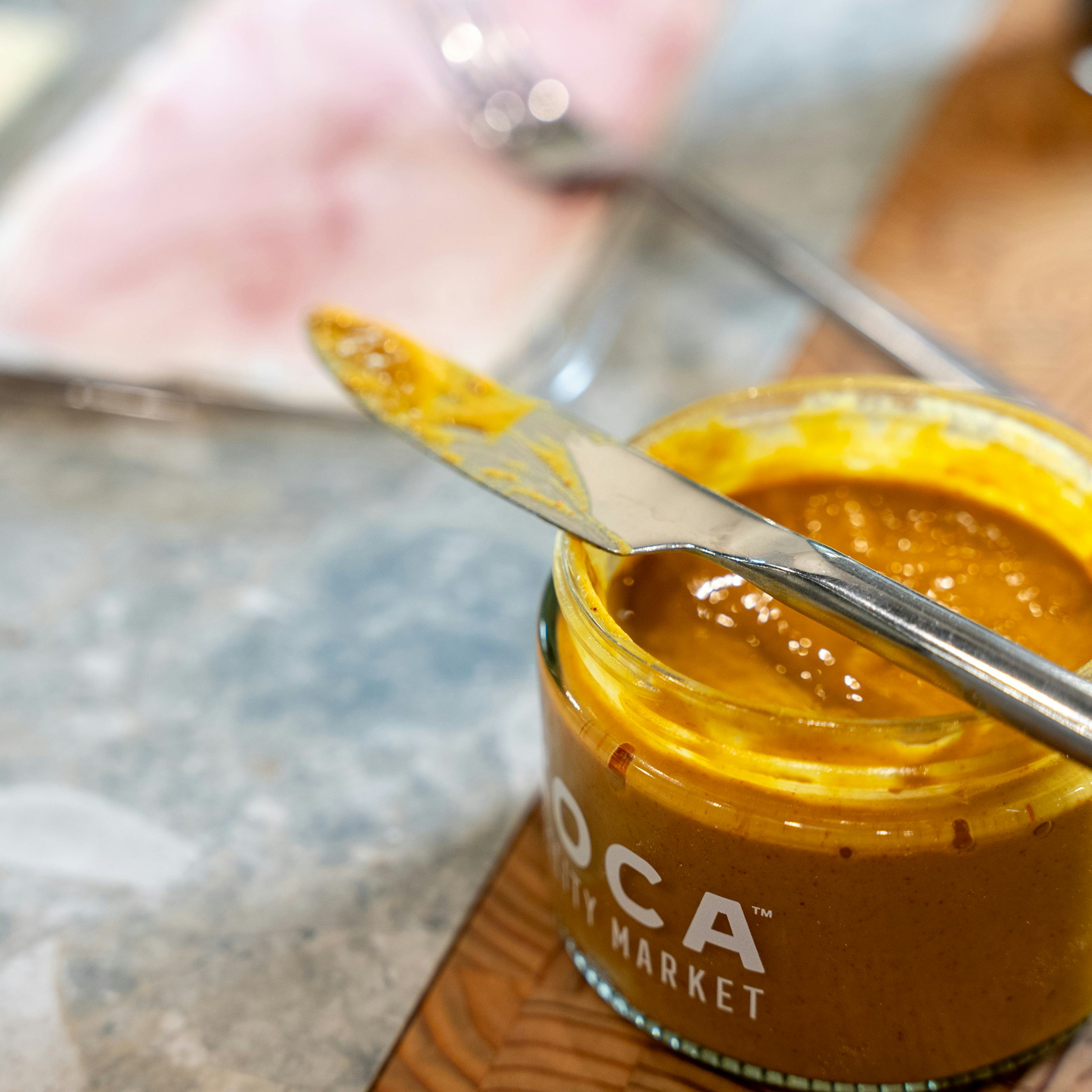 Also, we selected L’OCA Sweet & Smoky Mustard, not only to cut through the pork’s richness but to add just a little more mambo